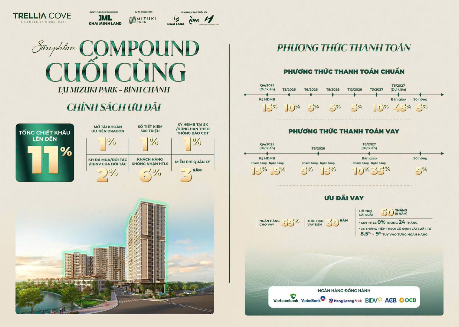 Trellia Cove là phân khu compound cao cấp nhất Mizuki Park, hợp tác phát triển bởi Nam Long Group và đối tác Nhật Bản. Dự án sở hữu hệ sinh thái xanh, không gian sống chuẩn nghỉ dưỡng, số lượng giới hạn: